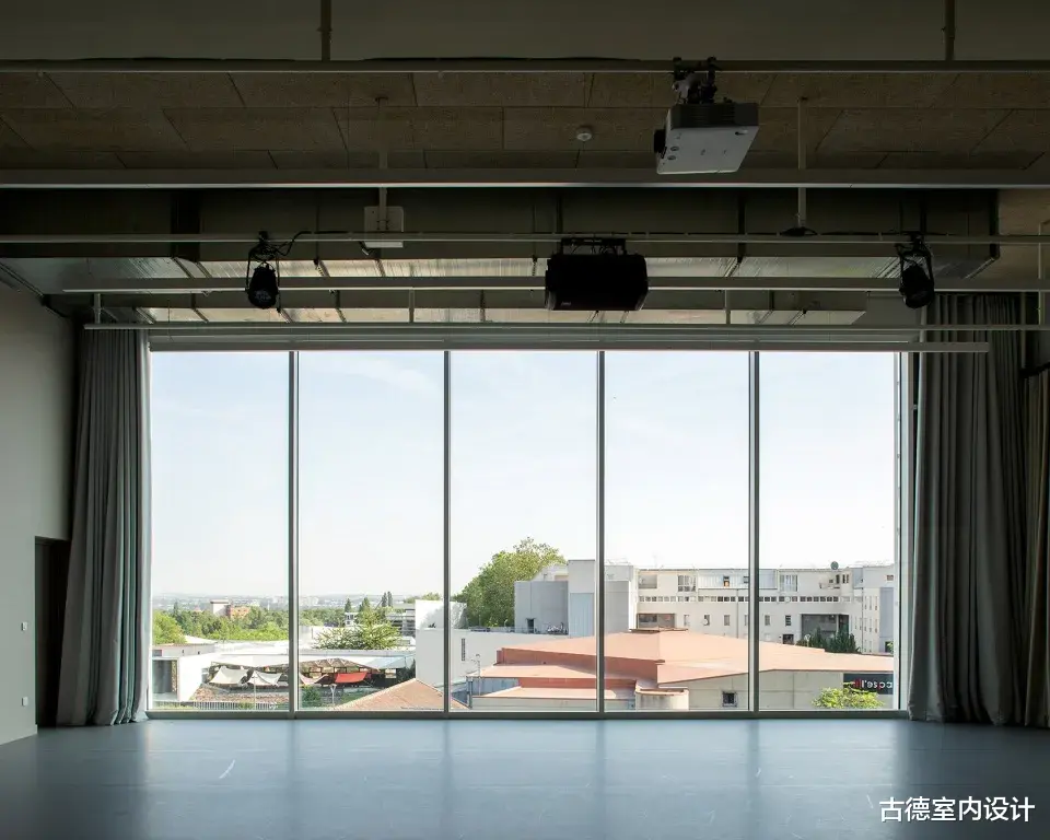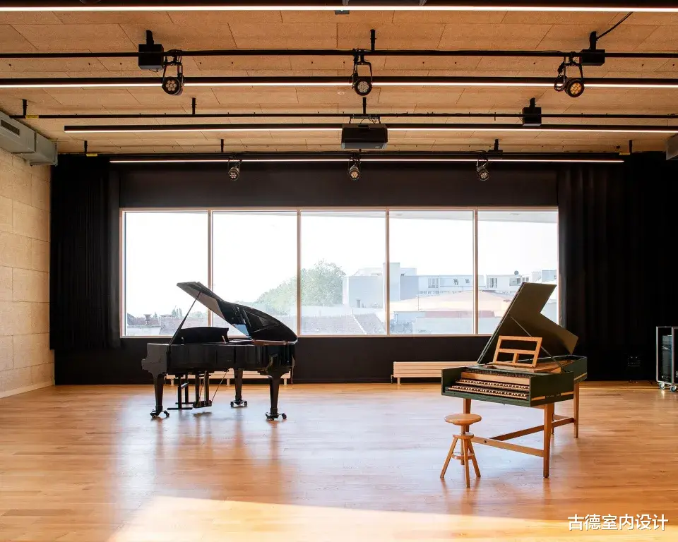 ▲排练厅©Gaëtan Chevrier所有侧墙和天花板的形状与曲折对声音的传播起到了重要作用。大厅是音乐学院与公共空间的交互之处,是一个重要的公共空间,向整个城市开放。内部,“市民倡议厅”是一个共享空间,用于举办市民咖啡会和协会会议。室外的广场成为公众聚集的核心,可以用来举办音乐会、户外辩论和公共集会。