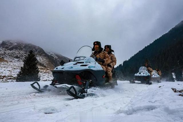 近日,陆军某边防团组织官兵驾驶摩托雪橇巡逻,用青春热血守护祖国的边防线。