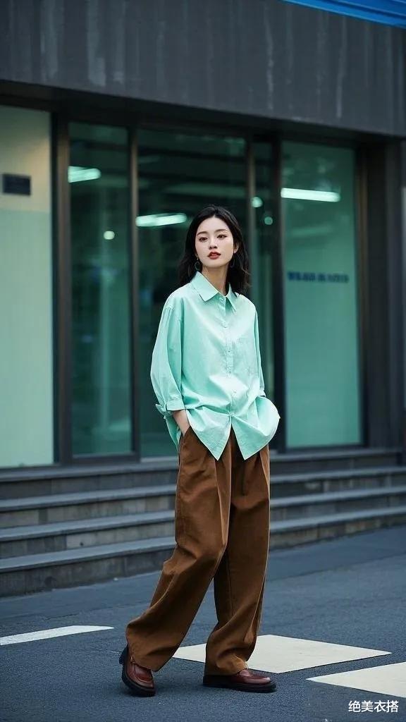鲜薄荷绿衬衫,可配棕色阔腿裤,无须注意细节,仅凭松弛与色调,引领属于当下的潮流风尚。少了淑女的拿捏,反倒游刃有余。