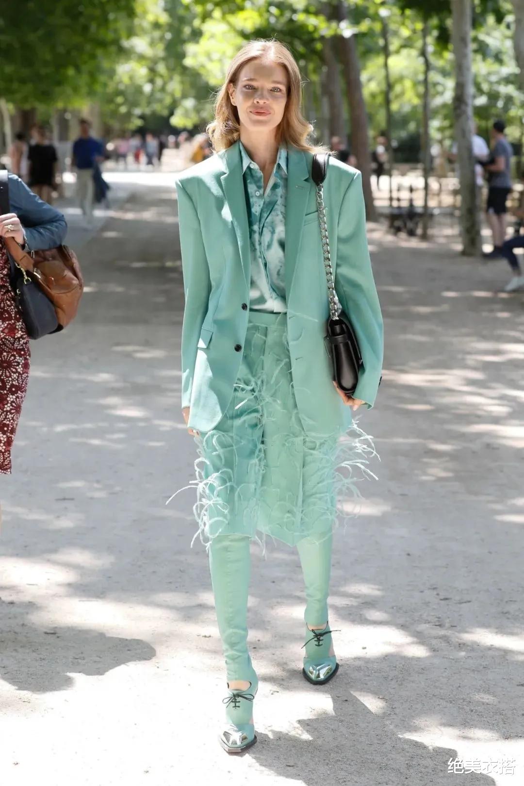 这套鲜薄荷绿穿搭,就是最佳示范。