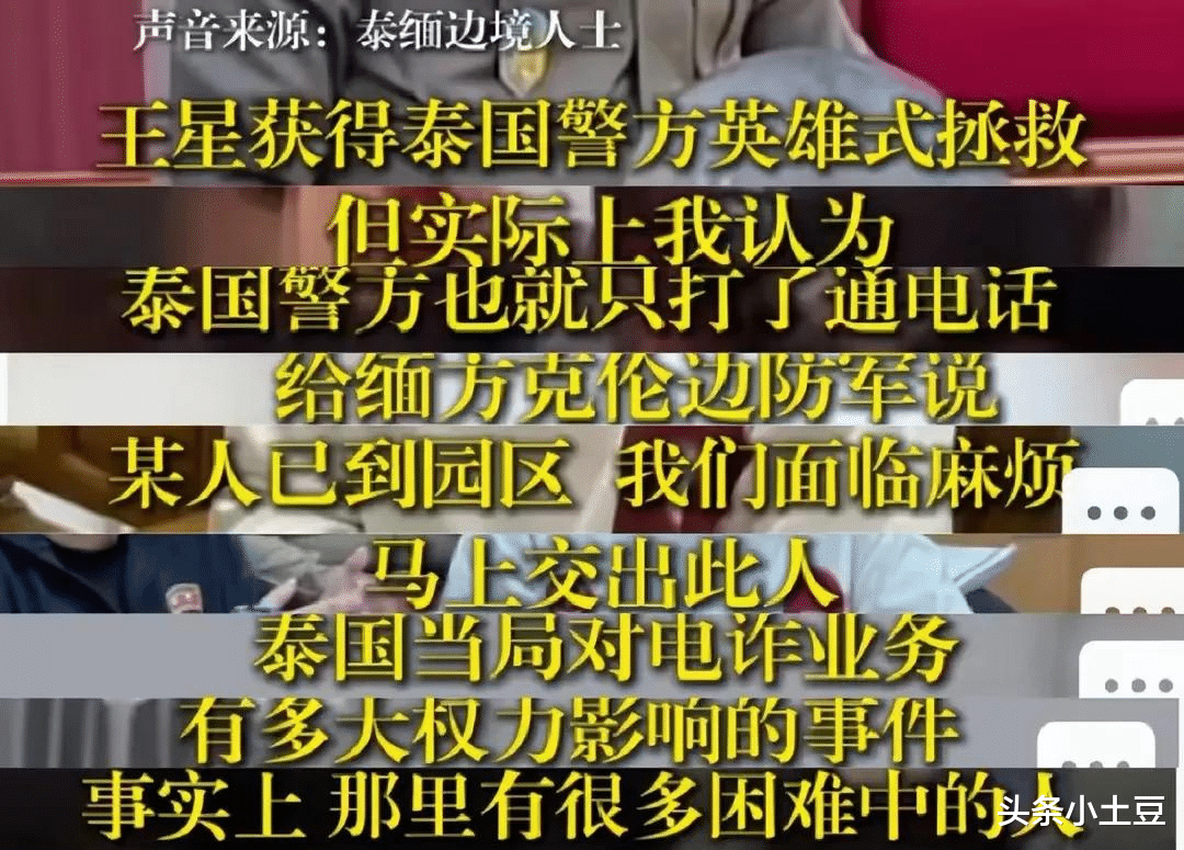 透露说只要就断电断粮,园区自己就撑不下去了。王星的解救并非如泰方所说困难重重,其实只需要泰国要是想救人,只要打一个电话就行。