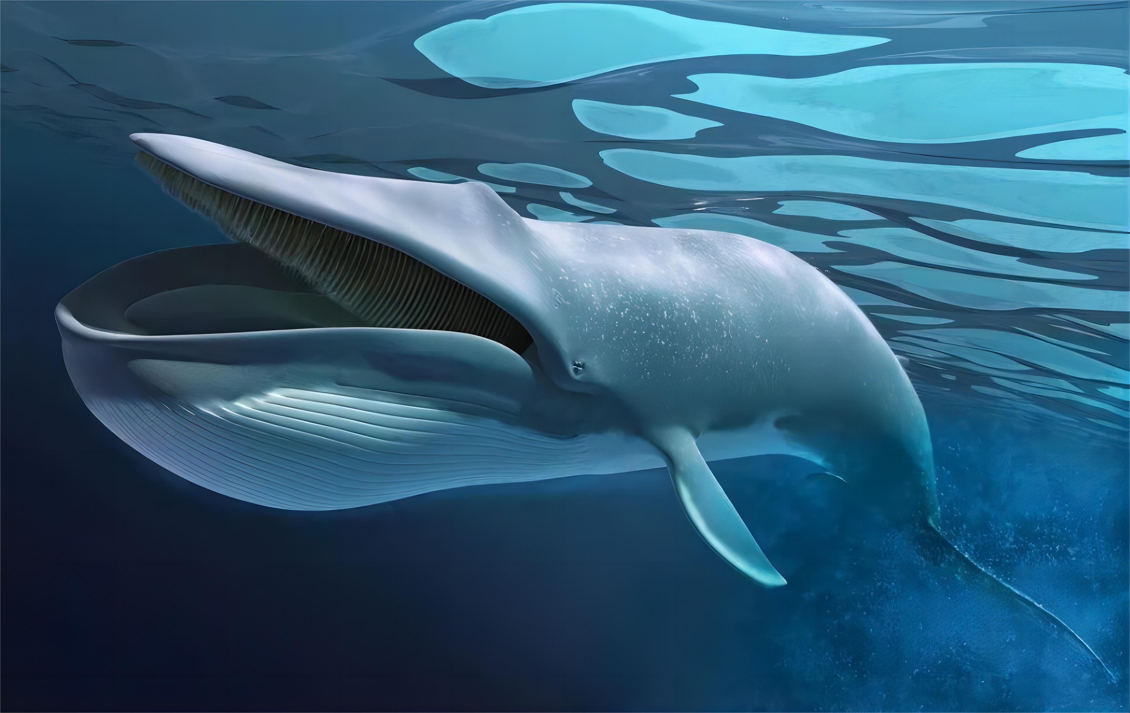 首先,要理解现代蓝鲸和史前沧龙之间的区别,我们需要在两者之间进行对比。沧龙是一种已经灭绝的海洋爬行动物,拥有锋利的牙齿和强壮的颚骨。它们在海洋食物链的顶端,作为食肉动物,它们的锋利牙齿帮助它们在猎捕猎物时占据优势。相比之下,现代蓝鲸完全依靠过滤食物来获得营养。它们没有锐利的牙齿,而是拥有数千根细长的鬃毛状鳍板,帮助它们筛选海水中的浮游生物。