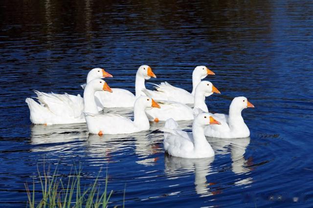 鹅的千姿百态,动静相宜,有的弯脖高歌,有的低头嬉水;有的漂在水面,静止不动;雪白的羽毛,白得耀眼;红掌轻轻一拨,水面荡起一圈圈涟漪,美得让人心醉。