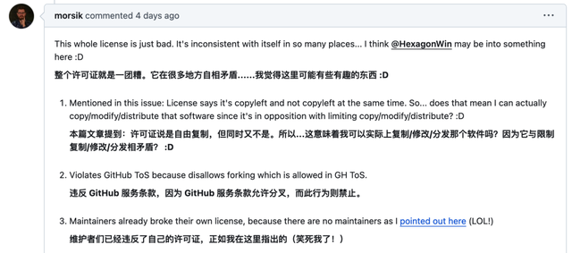 因此对开发者来说,这听起来并不像开源。事实上,他们似乎只是在寻求免费的社区维护而已——妥妥的“白嫖”。