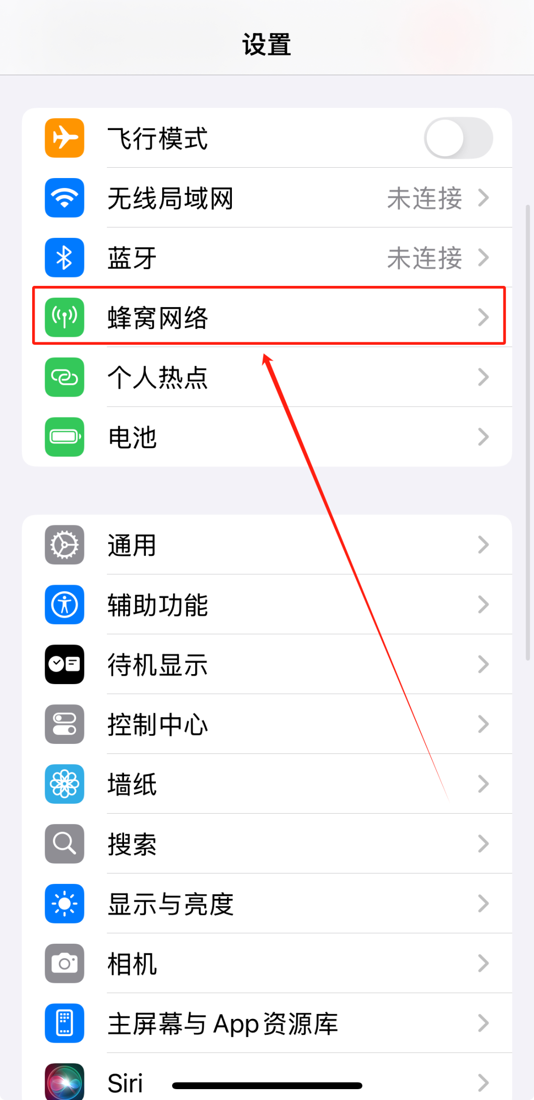 点击“蜂窝网络”选项。