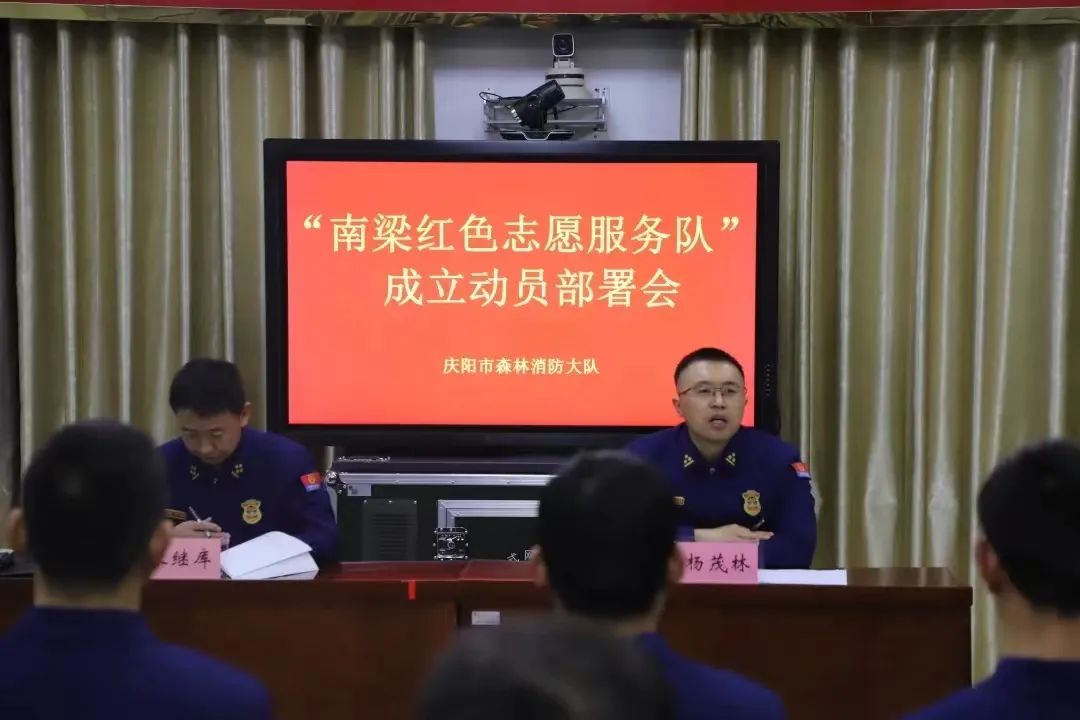 党旗飘扬,凝聚砥砺奋进的信仰和力量;训词引领,见证消防卫士的忠诚和担当。现如今,在这片红色热土上,有一群赤胆忠心的消防指战员,他们担负着3776平方公里范围内的森林火灾防控和灾害事故应急救援任务。庆阳市森林消防大队,2018年9月30日,由原武警森林庆阳市大队成建制退出现役转隶为庆阳市森林消防大队。转制以来,庆阳市森林消防大队发挥地域资源优势,筑牢思想之“魂”,补足精神之“钙”,灌注前进之“力”,倾心倾力打造涵盖“南梁精神”的特色森林消防队伍。