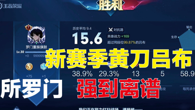 这个赛季玩了100来把了,成功上王者,吕布80%胜率。没错,就是黄刀流,真的香,出的肉,对面射手不在,刺客战士辅助联手打我十几秒我还有半血[笑着哭],杀了一个刺客一个辅助跑了一个战士。