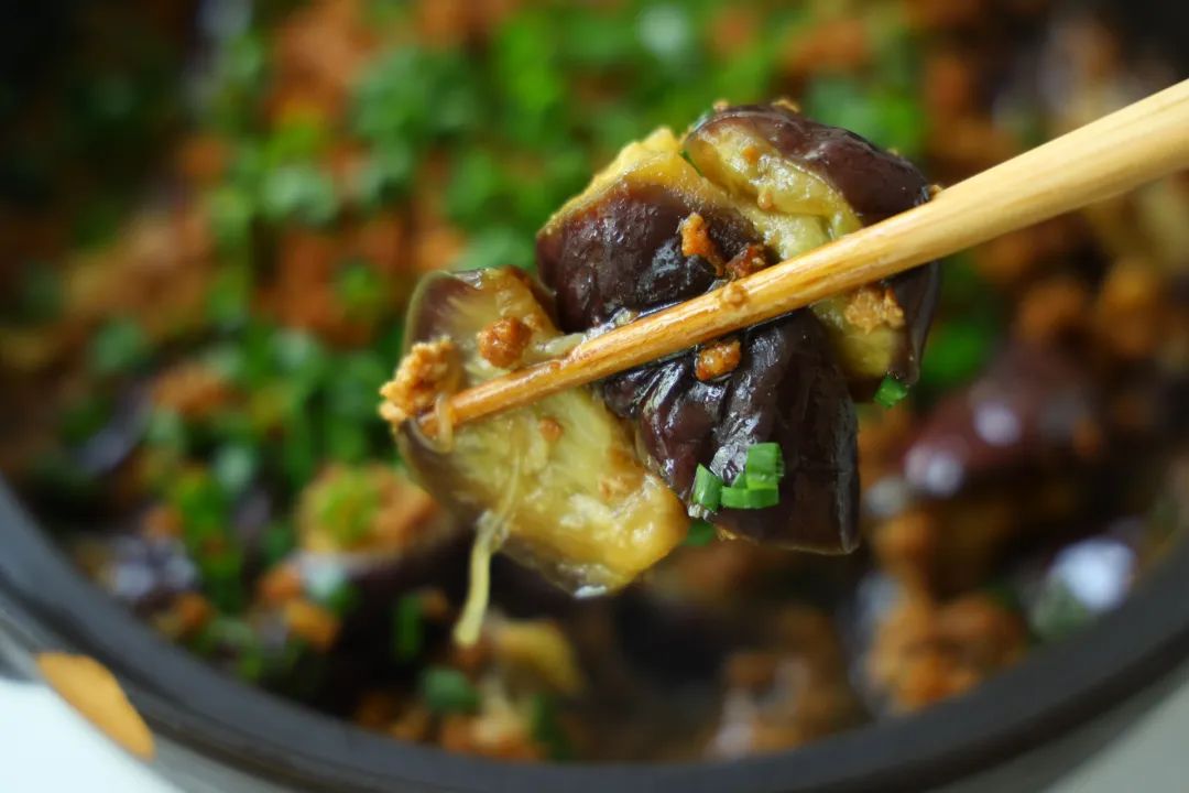 别看这锅菜长得像幅水墨画,颜值高得能当朋友圈"扛把子",人家可是实打实的营养模范生!紫得发亮的茄子皮里藏着花青素大军,对抗自由基毫不手软;猪肉末贡献优质蛋白给身体充电;粉丝看似低调,实则是碳水界的"暖男",默默提供满满能量。