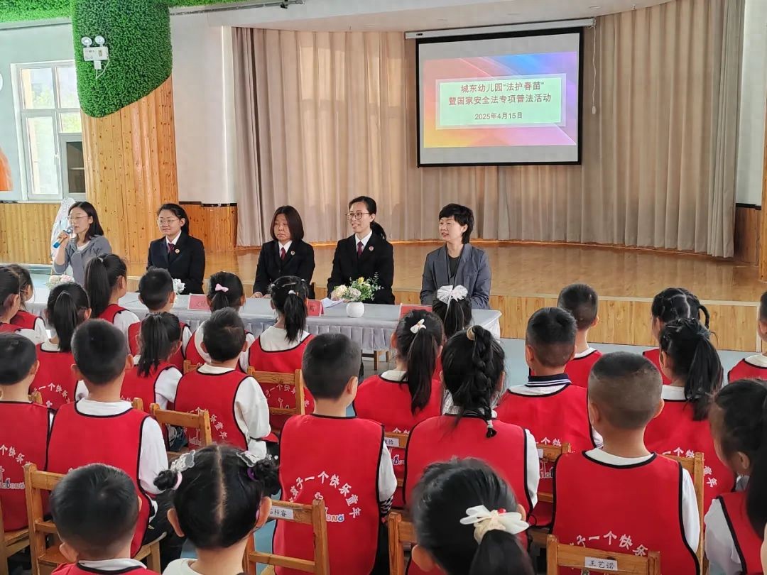 点亮法治灯塔,守护平安校园。为加大校园法治宣传力度,提高全体师幼法治观念和安全意识,营造文明和谐的校园育人环境。2025年4月15日,城东幼儿园特邀请垣曲县人民检察院检察委员会专职委员文玲玲、政治部副主任郭莉、第三检察部书记员卫婷婷走进幼儿园,开展“法护春苗”暨国家安全法专项普法活动。