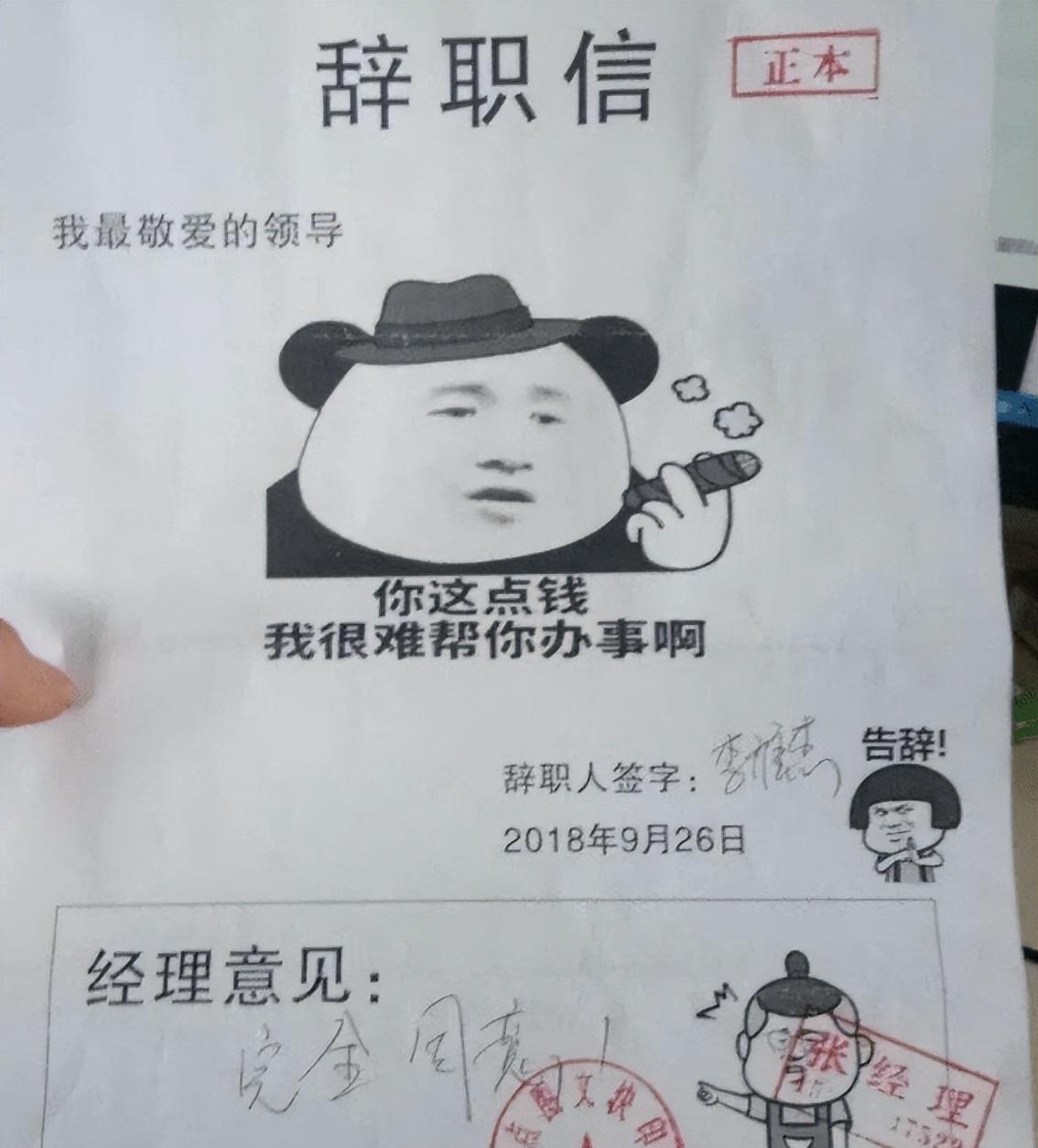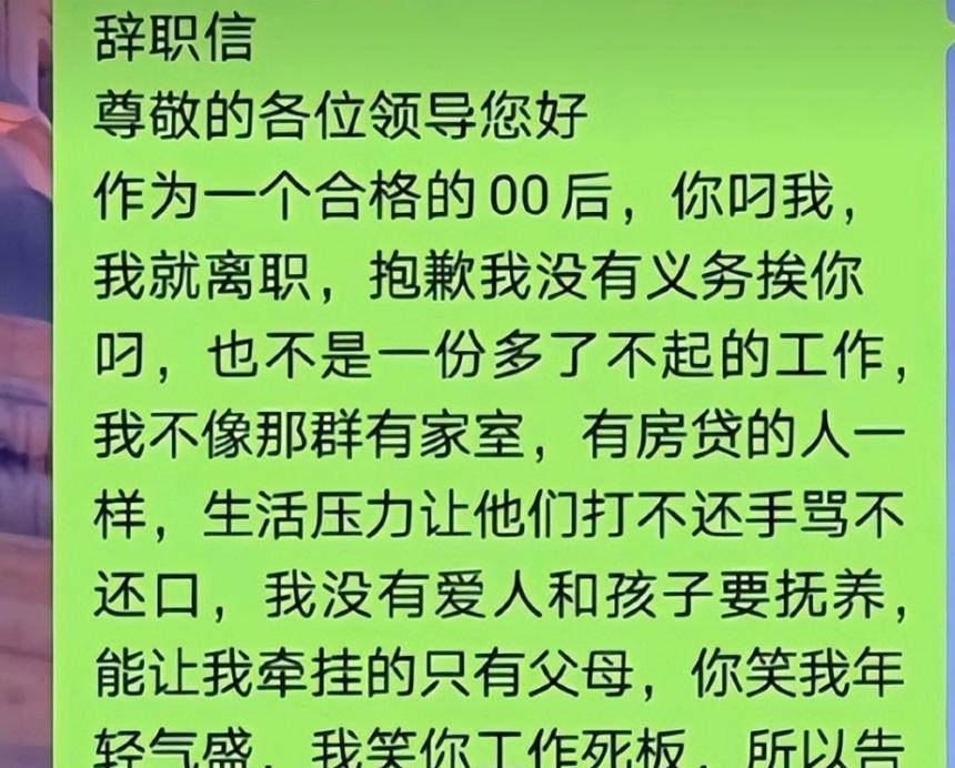 而且在辞职信中,全程高能输出,一面体面都不留,丝毫不动人情世故。不少过来人看完00后的辞职信,直呼太过瘾了。