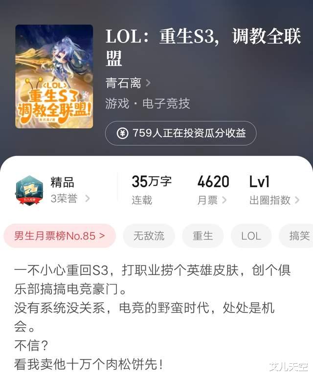 这也是起点第21本拿到万订徽章的LOL小说,今年的LOL第一本。
