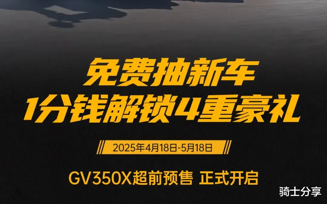 1. 免费抽奖,保价护航:在4月27日14点前下单的用户,可参与GV350X整车免单抽奖活动,中奖用户可任选车辆颜色,并且还将获得一年的保价承诺。这意味着在这一年内,您无需担心因车辆价格波动所带来的损失。