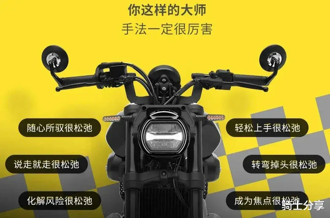 例如,经典的双层星瞳大灯、复古组合仪表、赛道式双边排气、舒适性马鞍坐垫、铝合金悬空后扶手、刀锋轮毂、隐藏式后脚踏等独特的设计元素,不仅彰显了复古韵味,更融入了创新理念,给用户带来了眼前一亮的感觉。