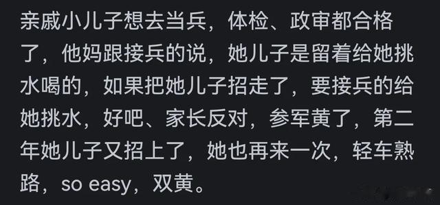 不托关系能选上当兵,说明身高体能各方面都不错的。自私而已,生孩子的目的就是伺候自己,给自己养老。