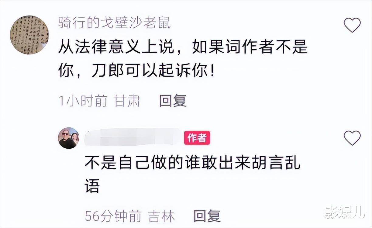 这一次,有网友直接评论:如果这首词不是李传忠写的,刀郎可以起诉。