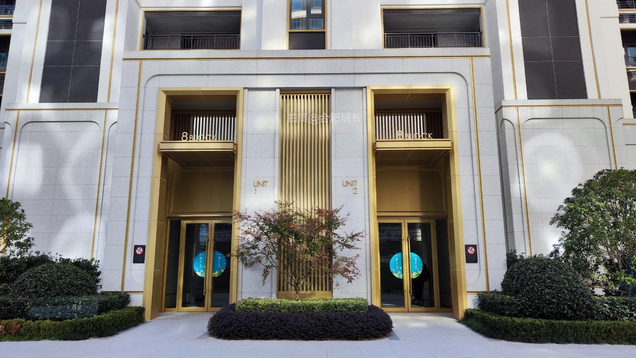 高第的外立面的风格不同于市面上大部分楼盘,以米白色作为主要色调,相信大家如果路过,都会印象深刻,实际走近看,还会发现墙面做了金色描边,让立面显得更加生动。