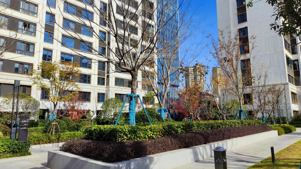 再往前走,开始进入了洋房区,有了施展的空间后,绿植的种类、覆盖率、丰富程度明显上了一个台阶,这里还能发现一个细节,小区的宅前绿化比较高,可以遮挡一楼的生活场景,隐私性非常好。