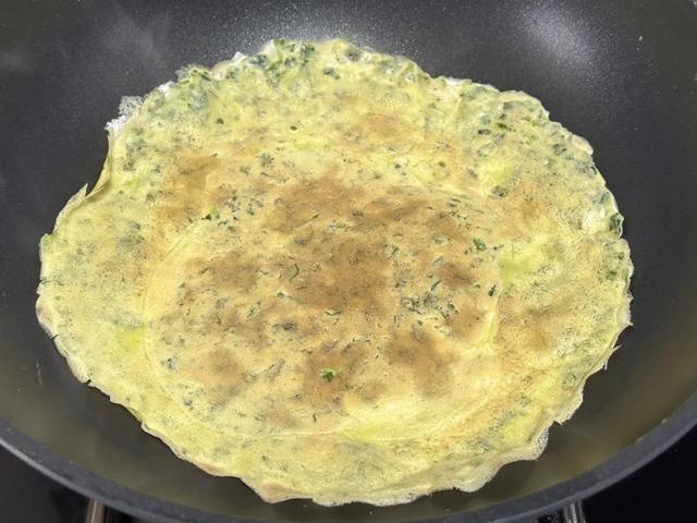 7、这次配方做的比较仓促,原本是不打算写这个菜谱的,所以具体的配方我没有承重,全靠感觉。但是这个饼真的太好吃了,后来就决定一定要分享给你们,荠菜不仅可以包饺子,做鸡蛋饼也超级无敌好吃;看看这个软嫩的程度!