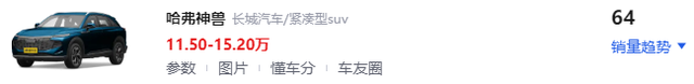 第三台SUV哈弗神兽,外观设计非常时尚,内部空间特别大,配置也很丰富,动力也很强,但是依旧卖不好!刚上市的那一年,一个月能卖出6,000台到7,000台,对吉利星越L都造成了威胁,但是现在一个月只卖出了64台车,估计离停产应该也不远了!
