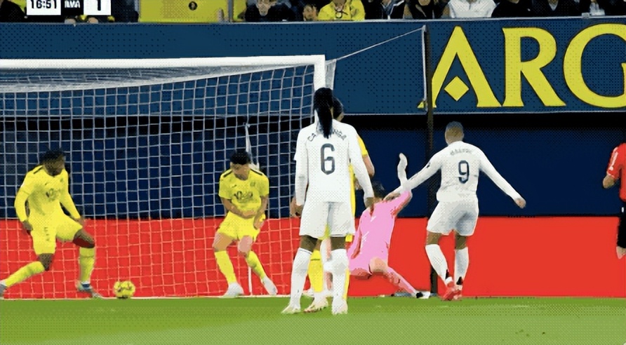 仅仅过了 2 分钟,黄色潜水艇再次发动进攻,就像汹涌的海浪一波接着一波。又是阿约泽・佩雷斯,他再次获得射门机会,这一次他的射门力量十足,角度刁钻,库尔图瓦不得不做出极限扑救。只见库尔图瓦飞身而起,伸展着身体,就像一只展翅翱翔的雄鹰,奋力将球扑出。随后,比利亚雷亚尔获得角球机会,皮球在空中划过一道美妙的弧线,落点让皇马球员们感到十分棘手,就像掉进了一个陷阱里。福伊特抓住机会,果断起脚破门得分。皇马这边还没来得及组织起像样的进攻,就像还在沉睡的巨人被突然打了一拳,瞬间闪电落后。
