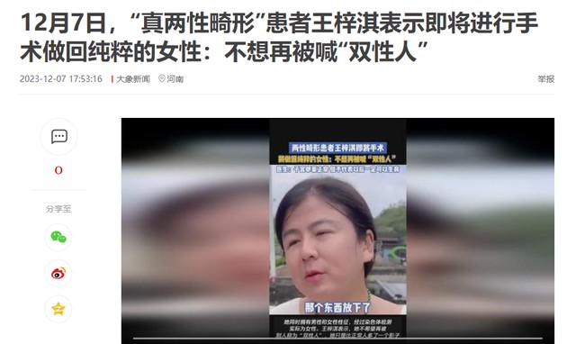 12月7日,“真两性畸形”患者王梓淇表示即将进行手术做回纯粹的女性:不想再被喊“双性人” [大象新闻]