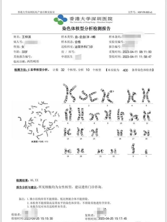 检查结果显示,她体内的女性生殖系统最为完整,染色体为“46,XX”,整体更偏向女性。