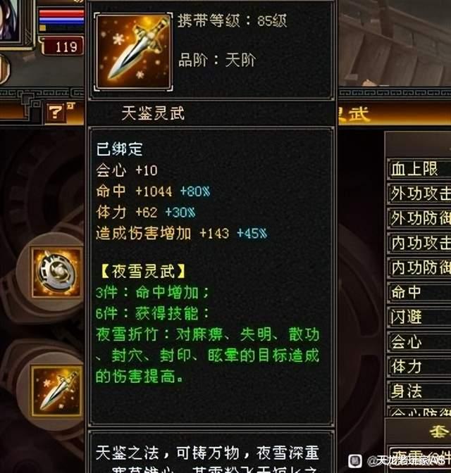 首先是夜雪天鉴锁甲,带体力、会心防御和受到伤害降低125!