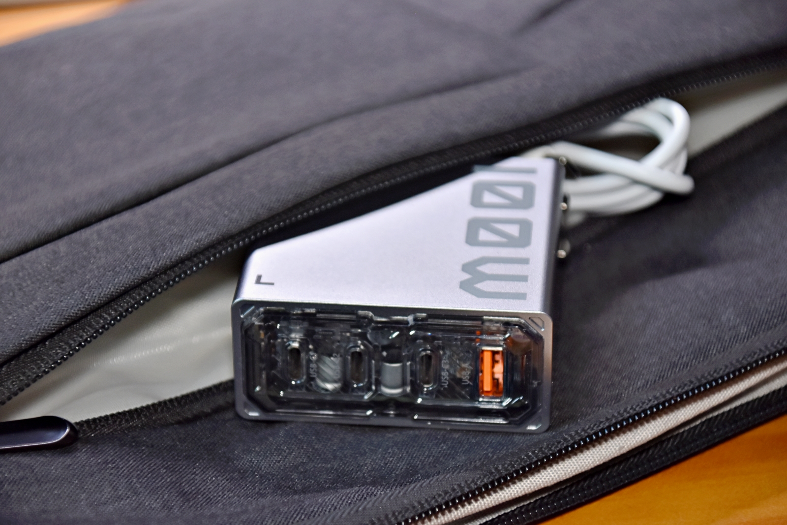 实际上给笔记本充电也并不需要那么大的功率,充电头提供 100W 的大功率输出是为了保障多接口同时使用,发挥充电头的功能性和便携性。