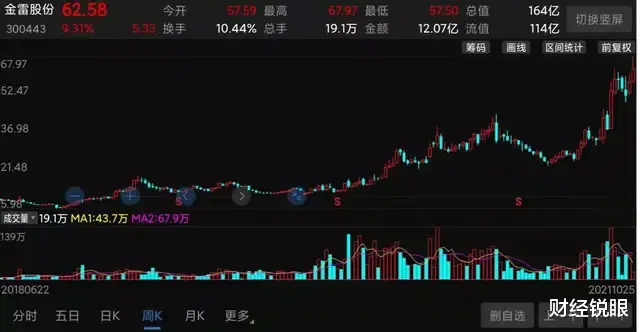 2018年10月的时候,公司前复权股价最低才5.98元,到今天早盘冲高创出的历史新高67.97元,累计涨幅10.36倍,市值从17.34亿涨到163.33亿。