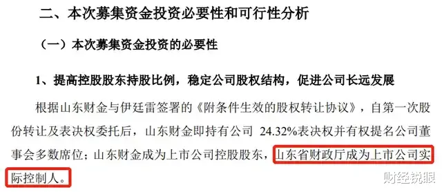值得注意的是,由于山东省财政厅与山东省社保基金理事会分别持有山东财金90%、10%的股权,因此在山东财金第一次受让股份完成后山东省财政厅将成为公司实际控制人。