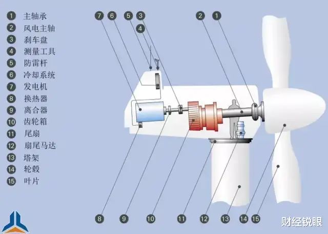 一台风电机组最重要的部分是处于底座、塔筒等支撑组件上端的整机及风叶,风电整机由主轴承、风电主轴、发电机、离合器、齿轮箱等重要零部件组成。