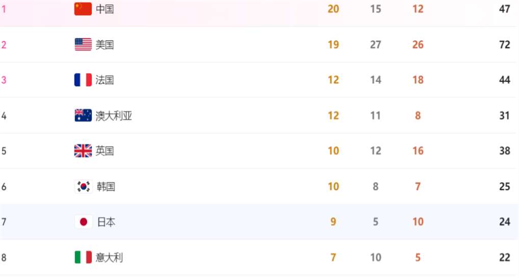我们也必须看到,金牌榜上的竞争依然激烈。美国队在田径和游泳项目上的优势依然明显,他们在奖牌榜上的总数也相当可观。此外,法国、澳大利亚和英国等队伍也在紧追不舍,他们的表现同样值得我们关注。