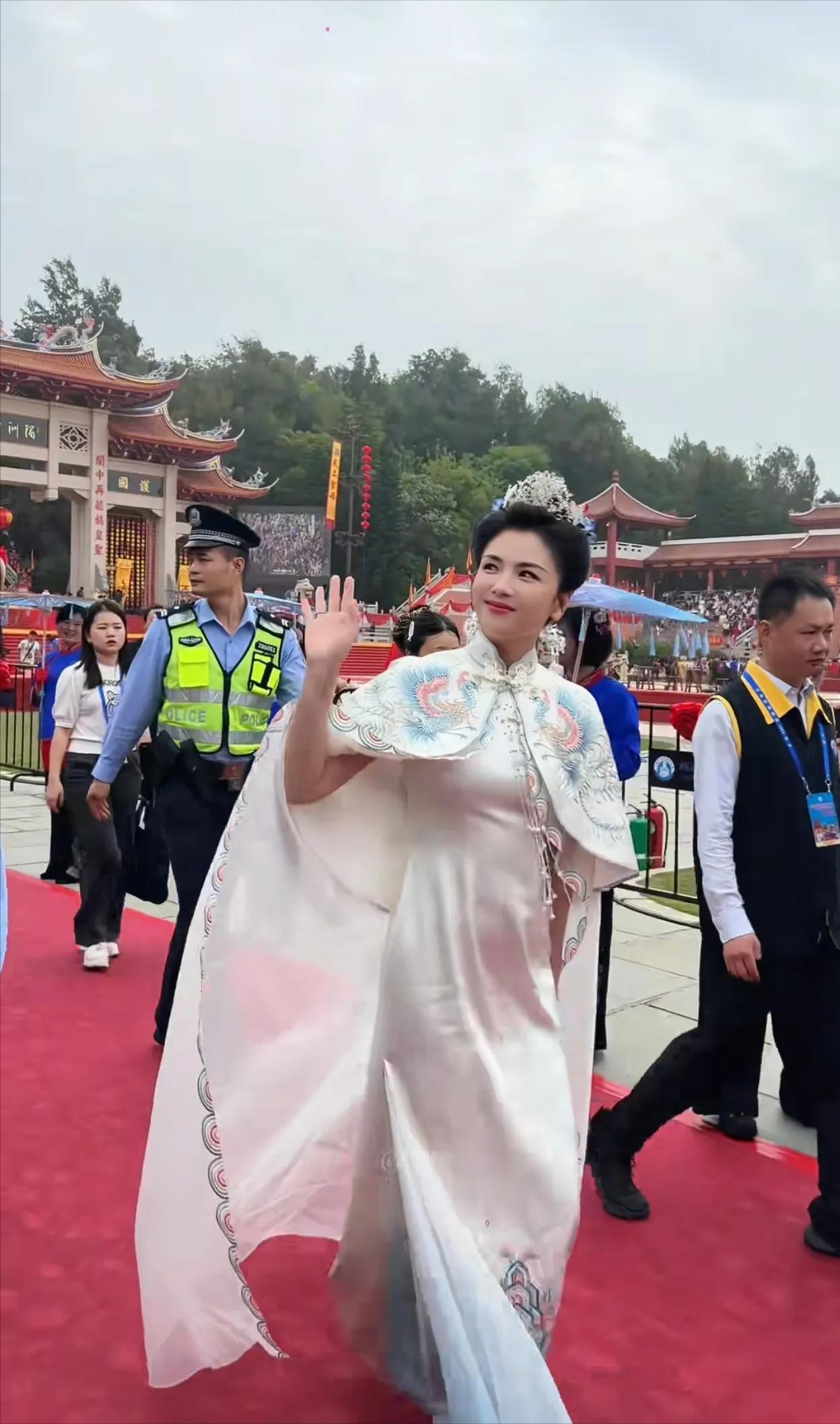 这位新晋妈祖文化推广大使,以两日三套神女造型霸屏热搜,更因堪比外国元首的安保阵仗引发全网热议——三级警督带队开道、省级官员陪坐观礼、信众跪拜高香祈愿,这般风光岂是寻常明星可比?