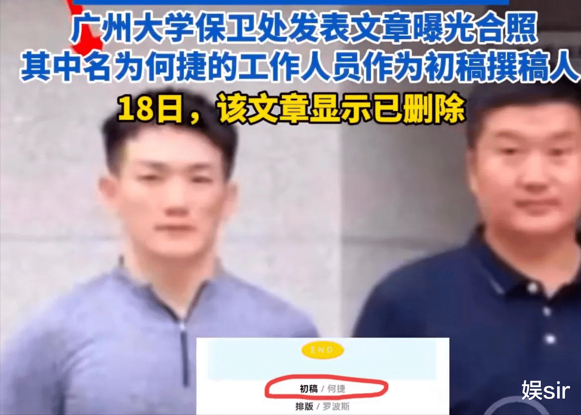 此前,广州大学保卫处官方账号10月份发布的一篇文章中,出现了多张疑似何捷的照片,编辑一栏也有何捷的名字,引起网友热议。