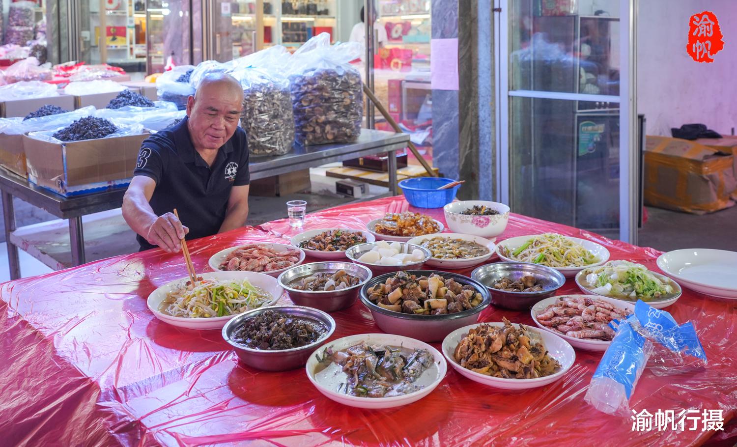 十分有趣的是,在瑞安水产城看到一位正在吃午饭的大叔,一个人吃一大桌菜,至少有十几道菜,据周边的店主讲,他当天吃的还不算好,平常每天都有几大盘海鲜,几乎每一餐都这样,或许对于这位大叔而言,这样的生活才有意义吧。
