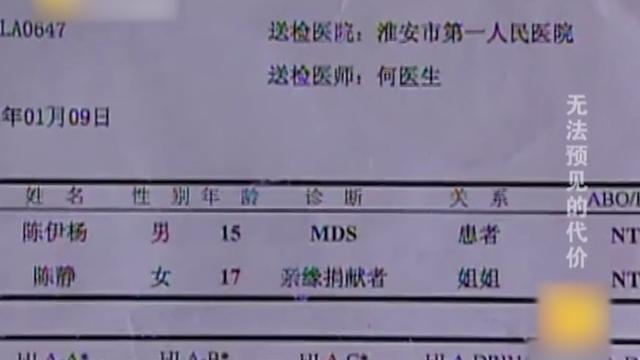 这时医院提出治疗方案,要不就做骨髓移植吧,如果手术成功就有康复的概率。正好陈阳有个17岁的姐姐,如果姐弟俩骨髓配型成功,很快就能做骨髓移植手术。并且因为有血缘关系,手术成功率会大大提高,手术后的并发症也会减轻。