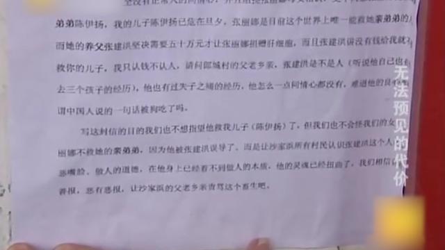 第二天张丽娜学校附近的街道,被贴满了大字报,上面控诉张建宏敲诈勒索没有道德,还写明了张丽娜的身世。眼看儿子病情越来越重,陈玲的行为已经失控,可怜天下父母心。张丽娜在学校里没法做人,被冠上了对亲弟弟见死不救的名号。