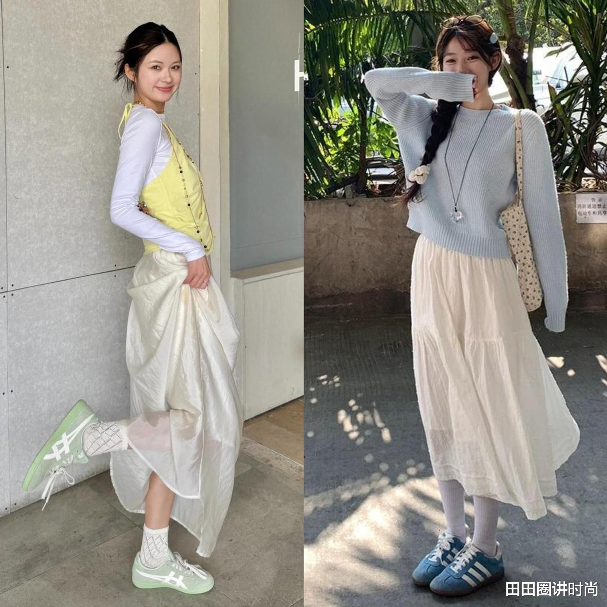 想要展现出俏皮的气质,姐妹们也可以来试试蛋糕裙,这种短裙搭配起来更加时髦清爽,而且初恋白色增加了轻盈感,穿起来太有女大学生的感觉了。