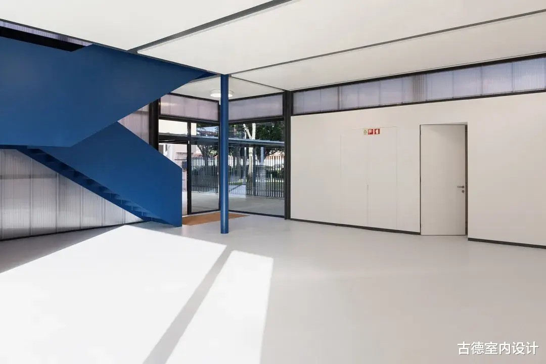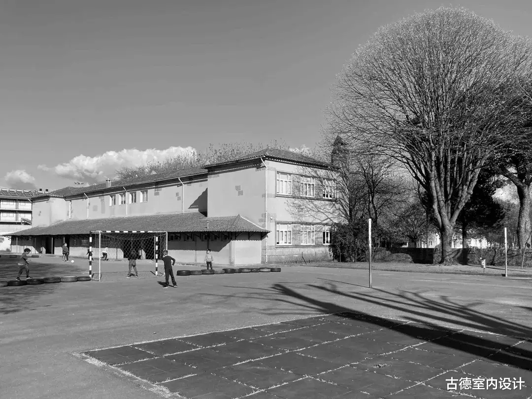 © António Ataíde在对教室、公共区域和流通空间进行精心翻修的同时,新的建筑体量变得独立,与原有建筑的阅读空间对峙并相互影响,将穿孔波纹金属板表皮延伸至学校的新走廊。波尔图Choupos大街上的Correios Básica学校之所以叫Correios学校,是因为它所在的地方周围是40年代最初为Pereiró社区CTT员工设计的住房。学校采用的建筑方案以百年纪念计划中的杜罗花岗岩类型为基础,最初由两个对称的体量组成,每个体量有4间教室,两两叠加,共两层,通过中央楼梯通往上层。从楼梯间的中庭可以通往小区后面有顶棚的操场。