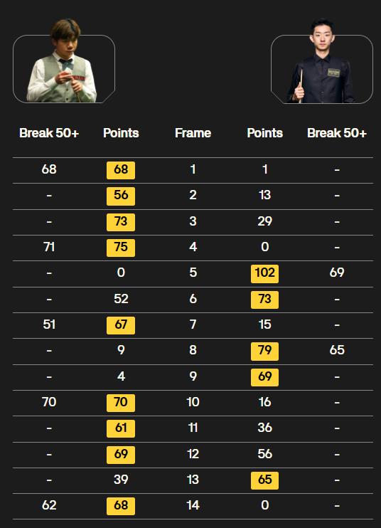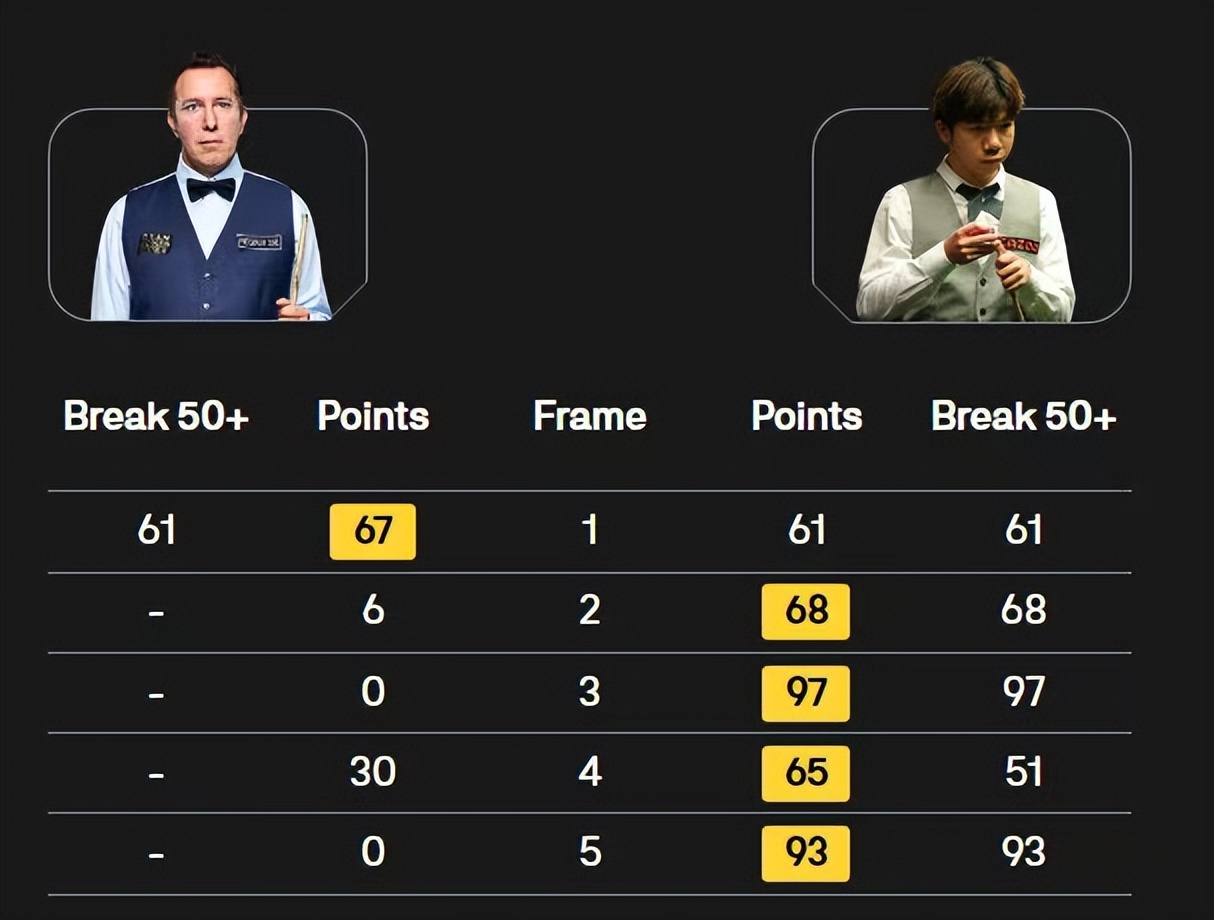 接下来的1/8决赛,雷佩凡对阵的是前世界冠军、世界排名第25位的英格兰48岁老将宾汉姆,2015年,39岁的宾汉姆在世锦赛决赛18-15击败墨菲,至此跻身世界冠军行列。