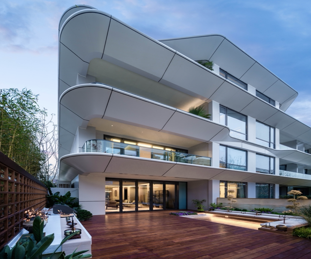 屹立于上海黄浦江岸的汤臣一品,国际大师执笔设计,以走在世界前沿的设计思想,造就其优秀设计作品。清凤·鹿溪源|臻钻岛重邀国际设计大师,历经千万次推敲与想象,采用高昂弧形铝板用材,打造约40%窗墙比游艇建筑立面;工艺选择上,更是选择难度成倍双曲造型,成本比市场贵约33%,正是对建筑颜值近乎偏执要求,让其在千篇一律风格中独树一帜。