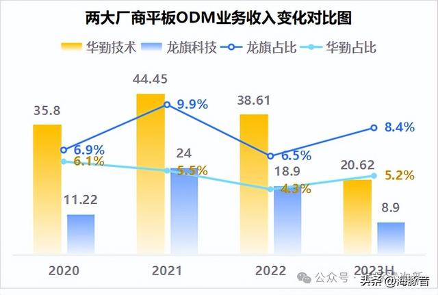 而相比之下龙旗科技为全球第三大平板电脑ODM厂商(第一位华勤技术、第二为闻泰科技),主要客户有华为、联想。2022年因与联想合作的Tab M8 HD 产品、P11 系列出货量减少,平板电脑ODM收入则同比大降24.5%至28亿,仅为华勤技术收入规模的13%,其平板电脑收入占比更是从2020年的20.4%下滑至2022年的9.7%。