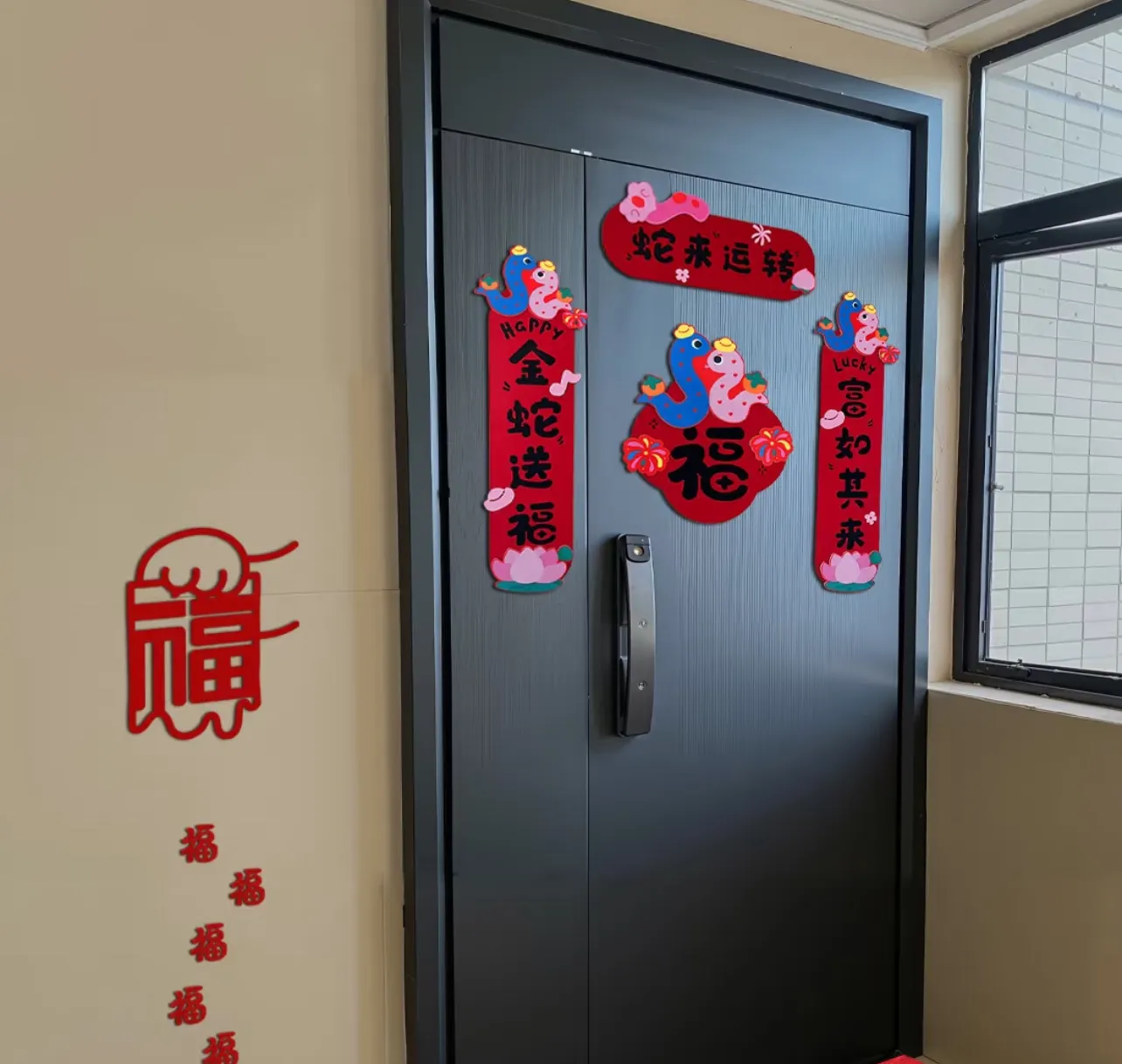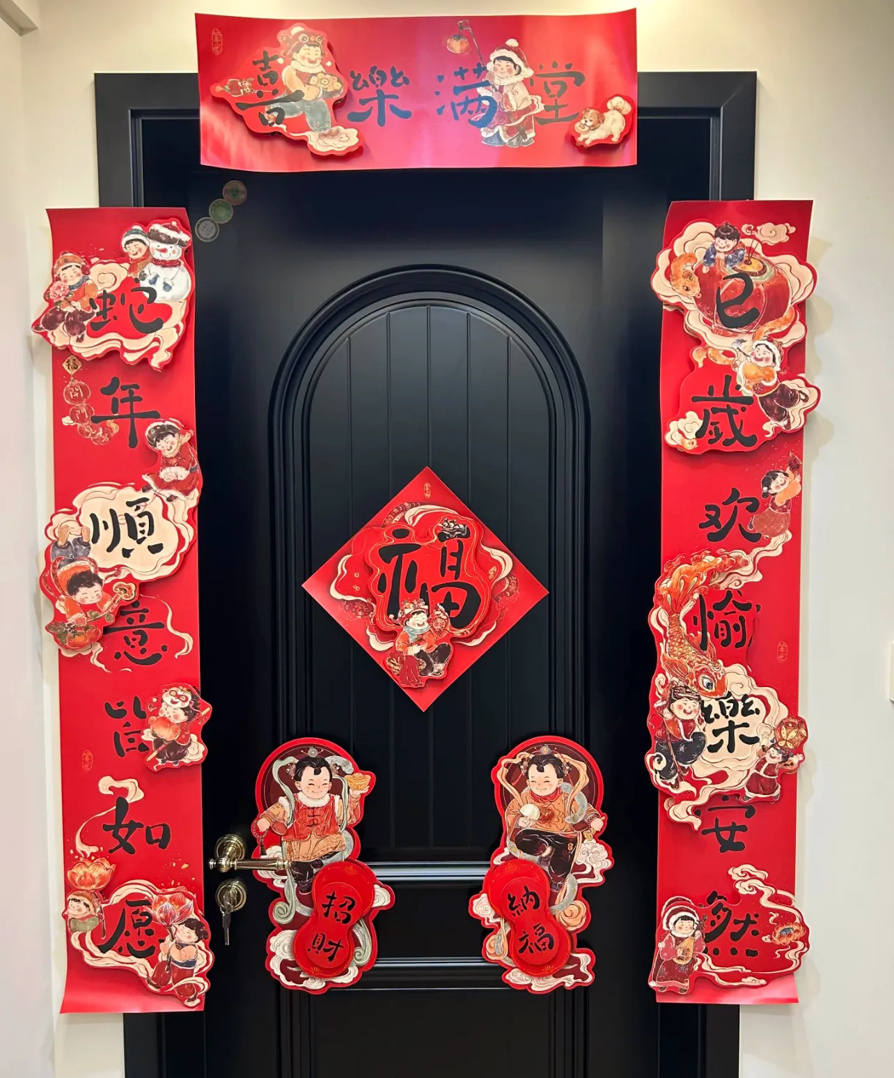春联,不仅可以是磁吸的,不用贴,直接往门上一贴就好,还可以是立体的,虽少了点传统春联写字的意趣,但效果确实更好。