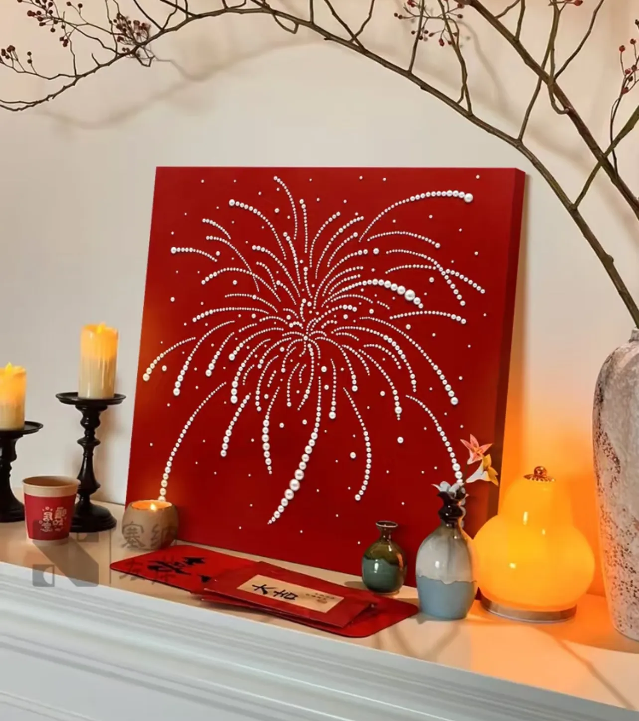 8、珍珠烟花画今年最火的“DIY挂画”之一,浪漫、精致感扑面而来。