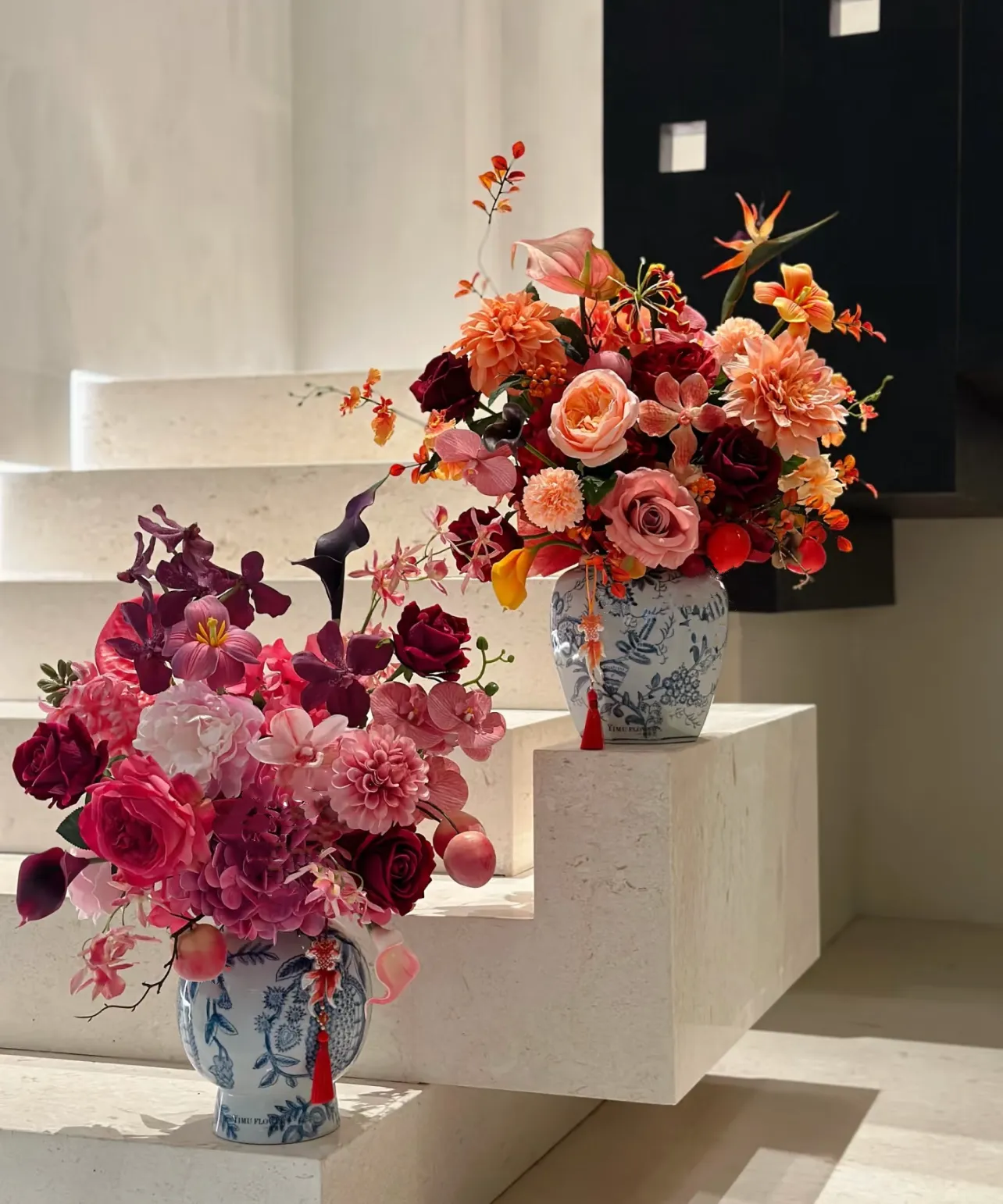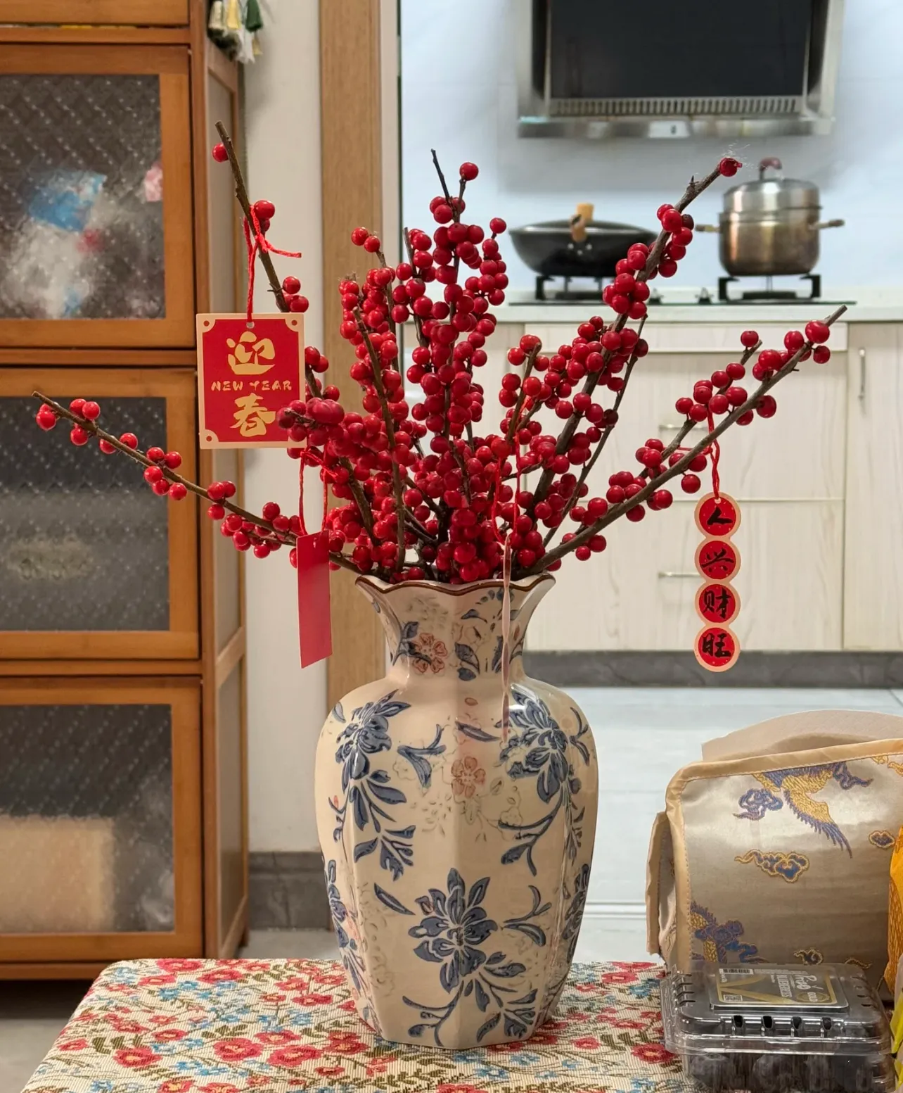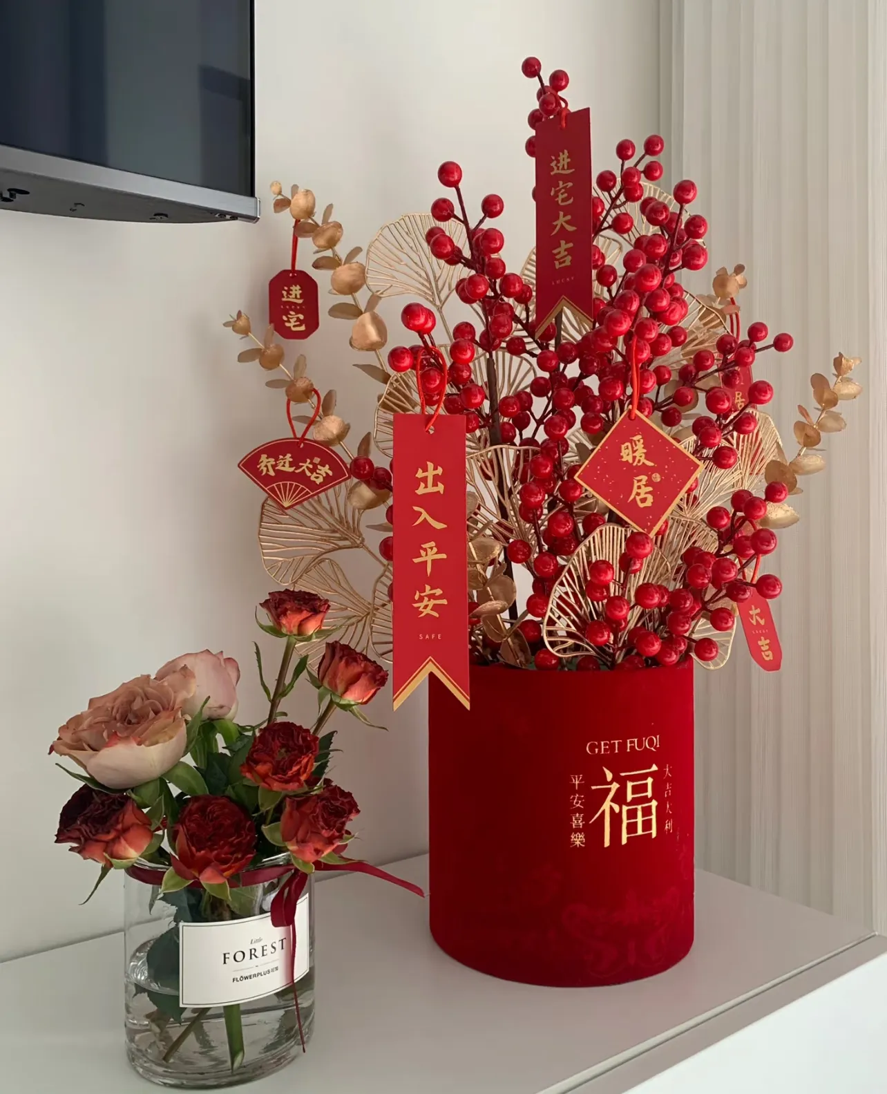 你可以换一个中国式的瓷瓶,一下就显得又喜庆又不失高级感了。