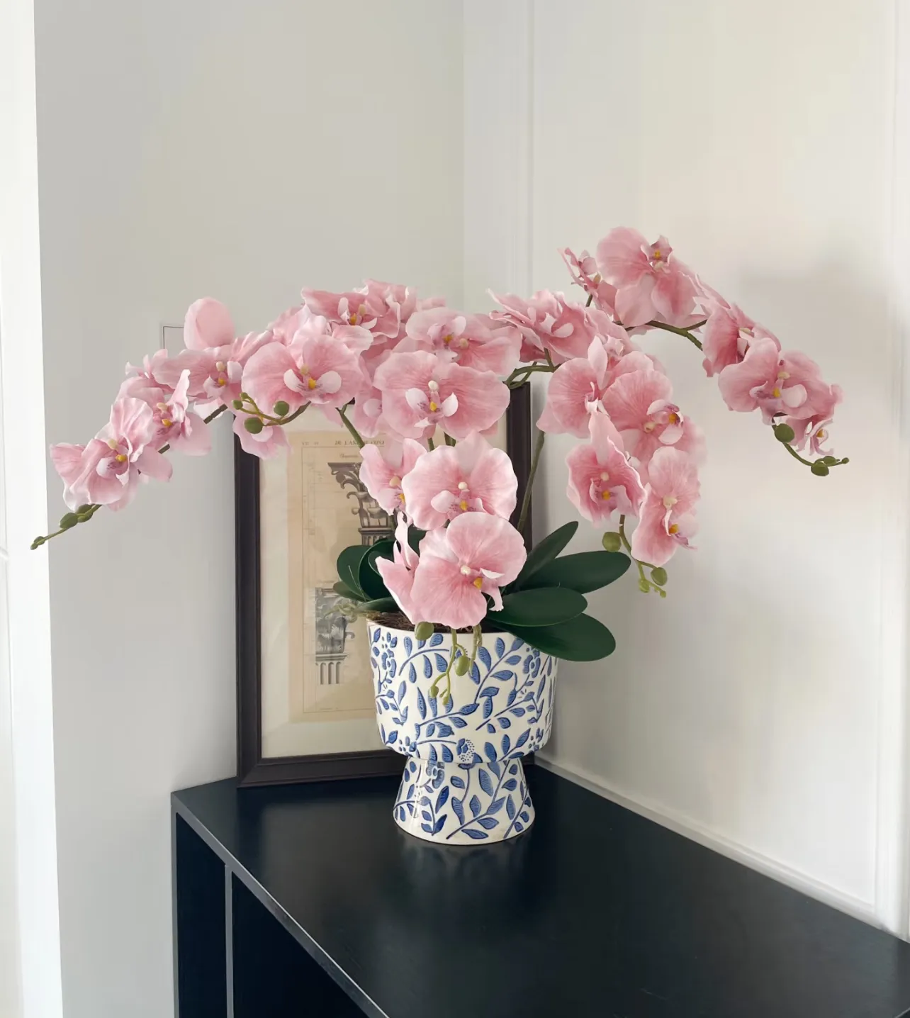 蝴蝶兰,很漂亮,但很难养,我们就可以考虑仿真花,跟新春的氛围也还算搭。