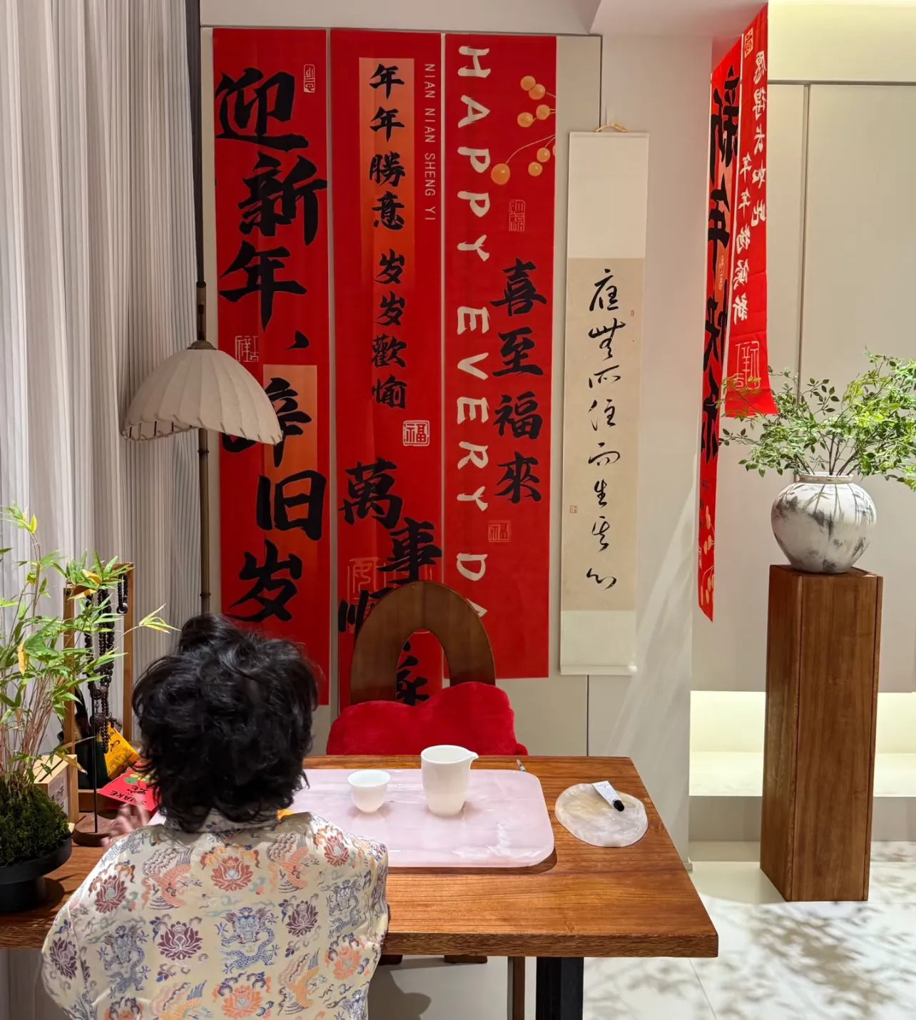 国风书法的雅,落在大幅的挂布上,挂在家里,有一种人被新年的喜庆氛围给包围了的感觉,也非常的出片。
