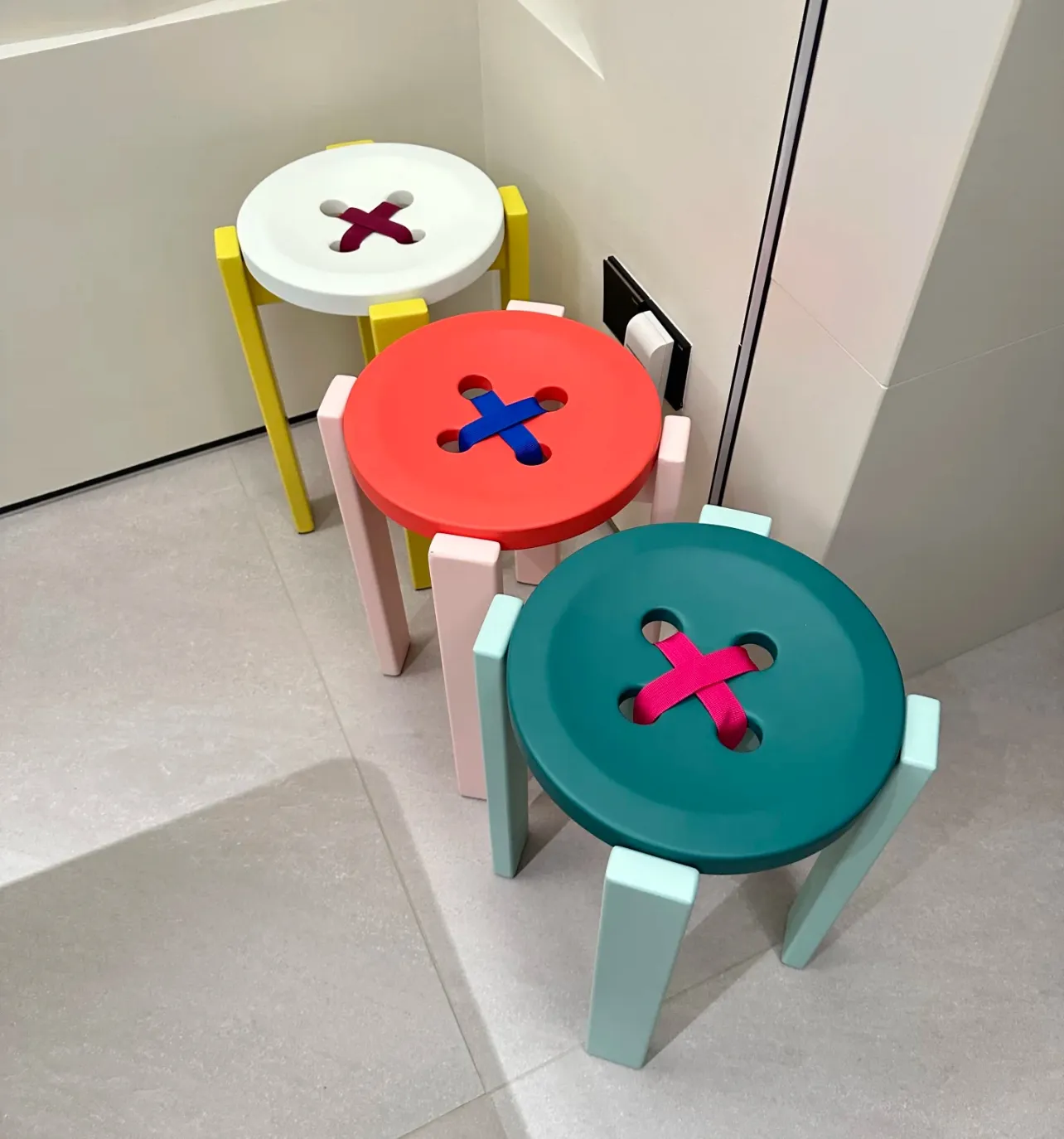 因为塑料凳又进化出了一个新形态——纽扣凳。
