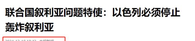 信源:央视新闻 2024年12月10日 关于“联合国叙利亚问题特使:以色列必须停止轰炸叙利亚”的报道