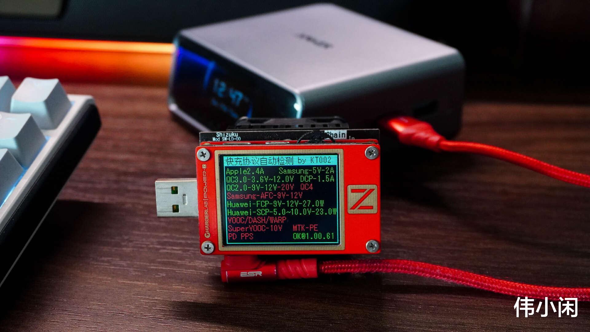 两个USB-A接口的协议也完全一致,Apple2.4A、Samsung5V-2A、QC2.0/3.0、DCP1.5A、FCP、SCP等协议,不支持QC4.0与PD,这两个接口以后就应用在智能手表、耳机、游戏手柄等小数码。
